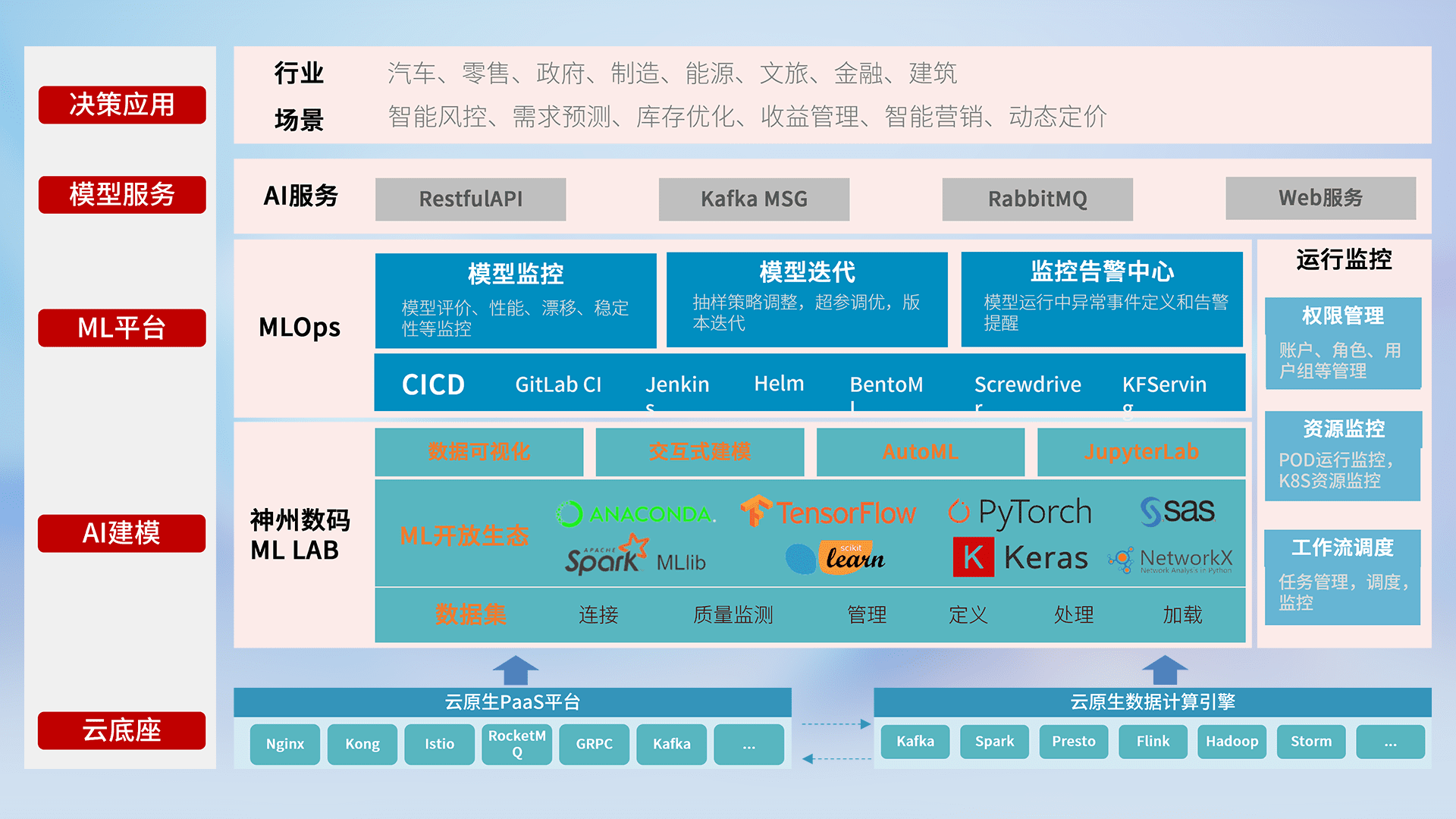 数据+模型双引擎驱动,,,面向智能服务场景,,,,快速灵活利用AI技术,,,,支持业务决策,,,助力企业智能化转型破局。。。。